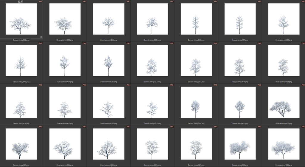 Добавить в избранное Убрать из избранного Деревья зимние лиственные 420 ₽ В корзину В корзину Раздел включает в себя 84 текстуры.Текстуры растений имеют маски прозрачности (все листья отделены от фона) - для удобства работы с ними (в форматах png, tiff).Слева выложены превью содержимого: Раздел включает в себя 84 текстуры.Текстуры растений имеют маски прозрачности (все листья отделены от фона) - для удобства работы с ними (в форматах png, tiff).Слева выложены превью содержимого: Поделиться